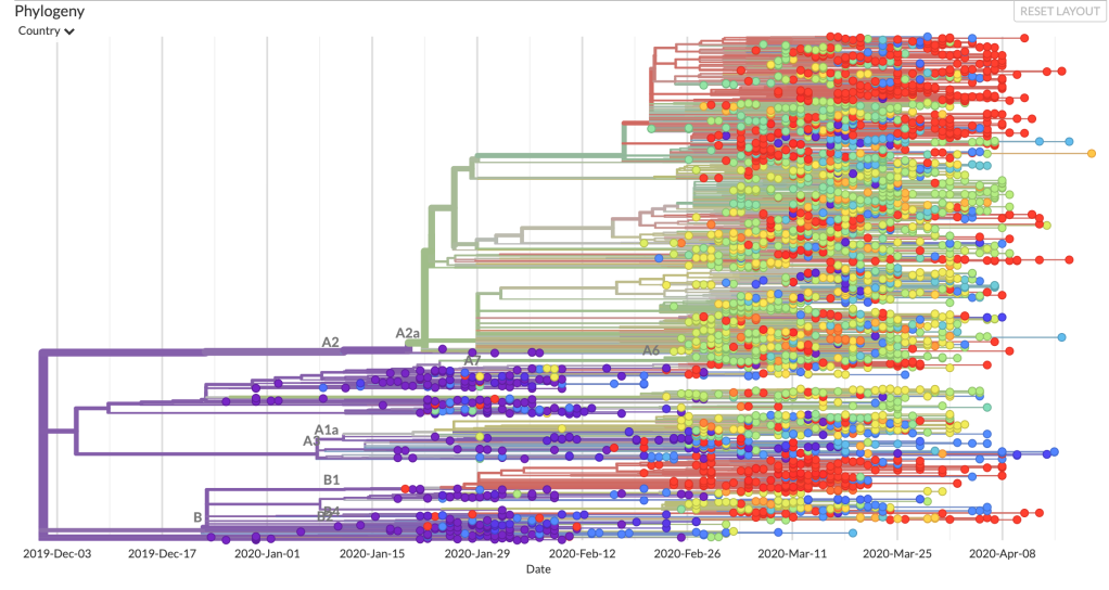 A completely different story is presented in the Wall Street Journal, which uses “Coronavirus Mutations Map the Global Outbreak”. It is one of the most remarkable interactive presentations I’ve seen on a newspaper website. It uses a coronavirus mutations map to trace the spread of the global coronavirus outbreak.