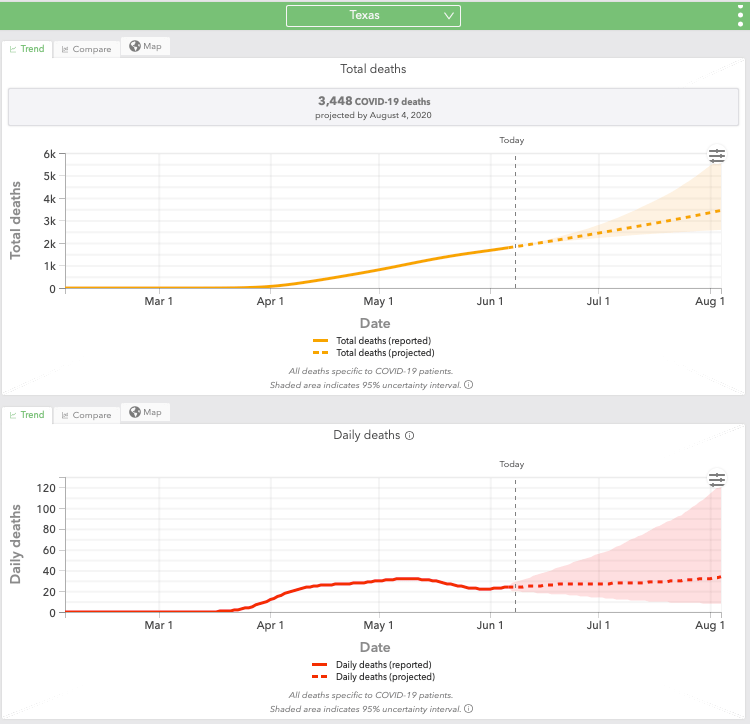 COVID-19 infections and hospitalizations in Texas. Source: IHME
