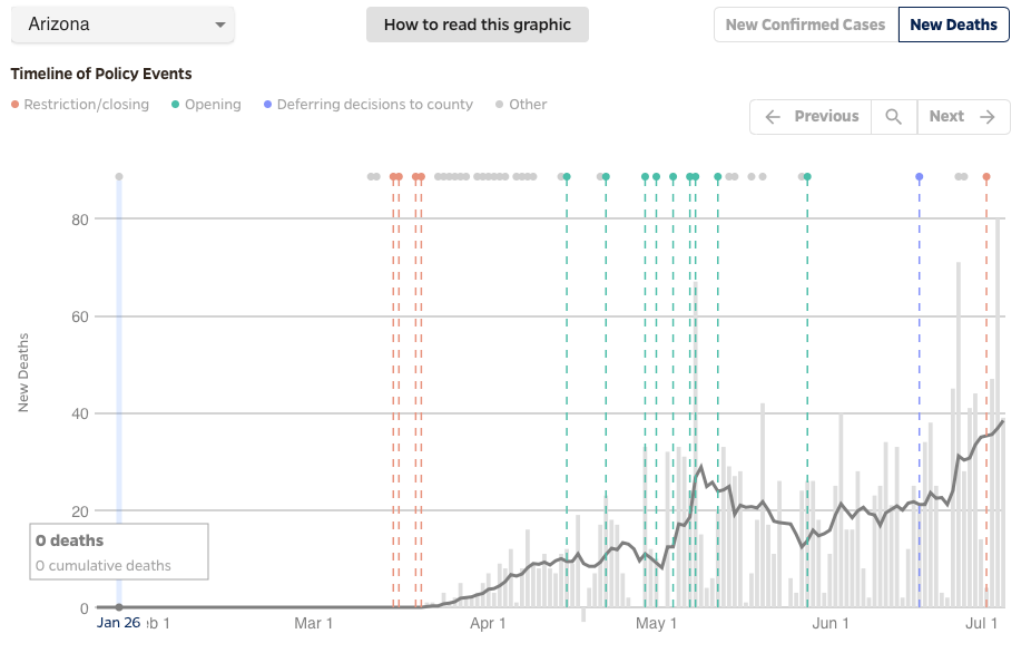 Finally, a few states do have more concerning numbers. Arizona is particularly important given a recent rise in deaths.