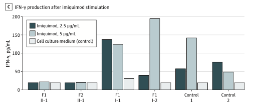 This defect significantly decreased the messenger RNA (mRNA) and therefore the amounts of several signaling proteins including IRF7, IFNB1, and ISG15. The end result was decreases in production of interferon gamma (IFN-γ), an essential anti-viral protein. Family members that did not get ill with COVID-19 uniformly had normal copies of the defective gene.