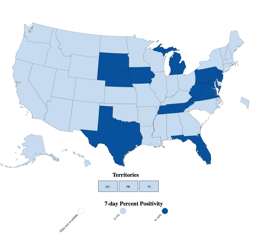 Looking at rates of positive tests there are only 11 states responsible for this increase.