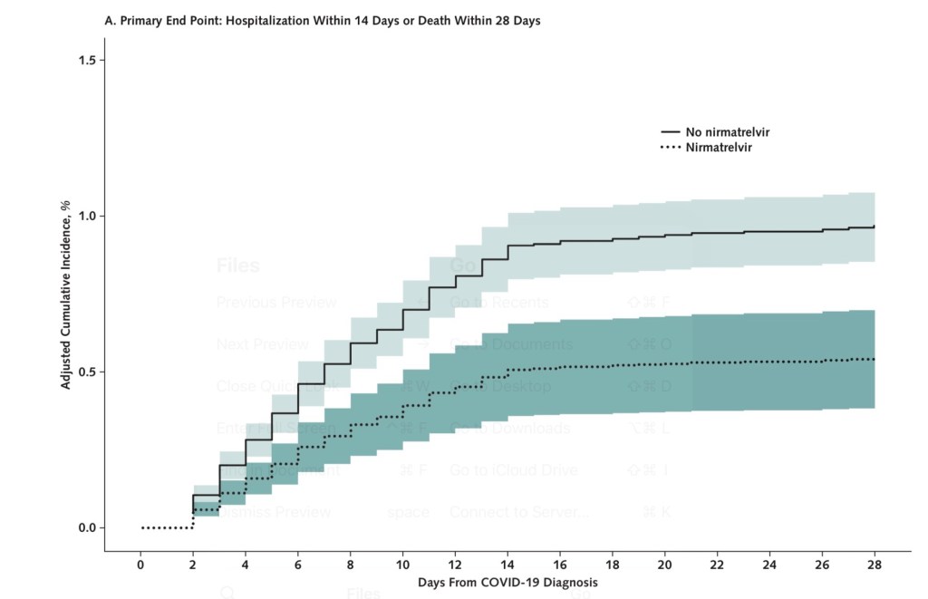 Question have also been raised about Paxlovid use in vaccinated elderly individuals. While the initial studies with Paxlovid were done in individuals who had not been previously vaccinated, it wasn’t clear that individuals with background vaccines to COVID would still benefit from this drug. The current data seems to indicate there is benefit.